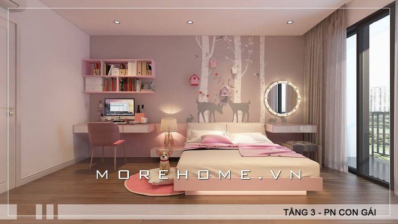 Morehome đã thực hiện việc lắp đặt đồ nội thất gỗ công nghiệp cho phòng ngủ của con gái của khách hàng tại căn hộ chung cư Imperia Garden Hà Nội.