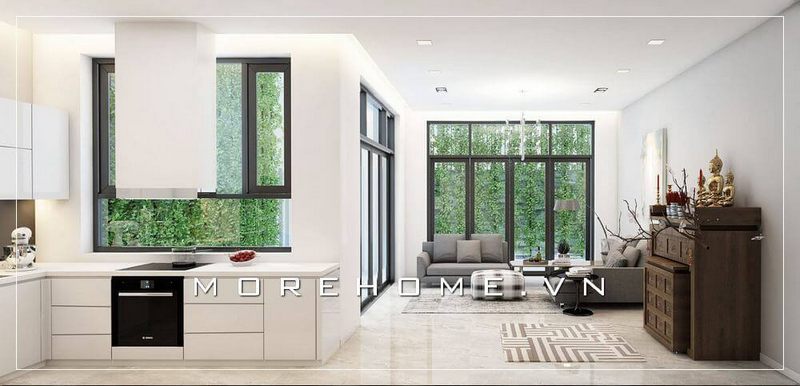 Một trong những yếu tố quan trọng nhất là sự kết hợp hài hòa giữa ánh sáng tự nhiên và các yếu tố nội thất. Những ô cửa lớn không chỉ giúp không gian trở nên thoáng đãng mà còn mang lại cảm giác gần gũi với thiên nhiên. Bên cạnh đó, việc sử dụng vật liệu cao cấp như đá marble hay gỗ tự nhiên sẽ tăng thêm vẻ đẹp sang trọng, đồng thời tạo ra sự ấm cúng cho từng góc nhỏ trong ngôi nhà.